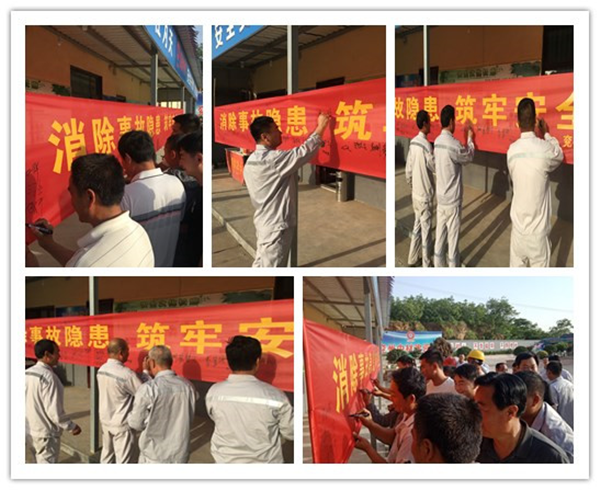 随后,全体员工在印有“消除事故隐患,筑牢安全防线”安全月活动主题的条幅上,庄重的签上自己的名字。