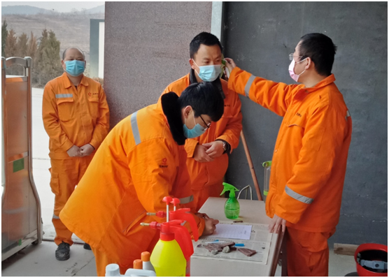 疫情当前,非常时期,大会开始前,分公司为每名入场员工测量体温,喷洒酒精消毒,填写测温记录,并按要求签定了疫情防控责任承诺书。分公司要求每个员工必须严格按照承诺内容采取防控措施,每天要对员工进行班前测温,发现异常坚决劝返就医,严禁带病上岗。分公司还想方设法,通过多种渠道购买了防护口罩,按人头发放,以供员工们在岗期间使用。