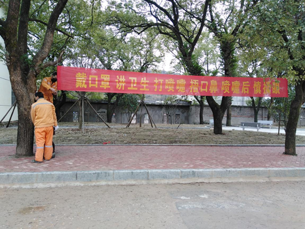 加大宣传力度,增强员工意识,在微信群分享、张贴宣传画的基础上增设悬挂条幅、向员工分发防控手册等措施。