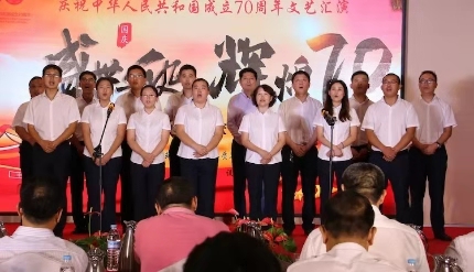 为庆祝新中国成立70周年 ,9月29日下午,由兖州中材和山东地质总队联合举办的“盛世华诞 辉煌70”国庆文艺汇演隆重举行。 一首首优美的歌声、一段段好看的舞蹈表达了对祖国母亲生日的祝福。一首《国家》,把祖国这70年来的情怀用歌曲的形式表达,祝愿我们祖国的明天会越来越好,家是国,国更是家。一首《映山红》,那优美的旋律、深情的歌词表达了对红军的热爱和对英雄的崇敬之情。一首《今天是你的生日》表达了对祖国母亲深深的热爱和祝福。本次汇演形式多种多样,精彩纷呈。包括舞蹈、合唱、独唱、相声小品、乐器独奏等。          通过本次文艺汇演增进了兖州中材和山东地质总队的友谊,展现了“不忘初心、牢记使命”主题教育的新成果,增强国庆的节日氛围,更加增强全体职工的爱国之心。 |