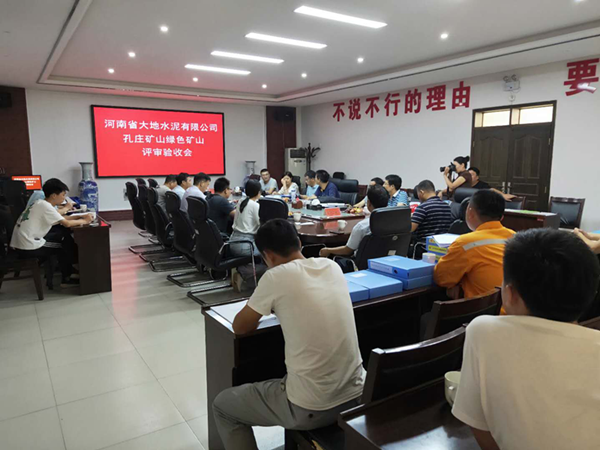 大地水泥厂会议室,专家组一行首先听取了宝丰分公司矿山综合整治、恢复治理及绿色矿山创建方面所做的工作汇报,随后专家组来到矿区,对宝丰分公司矿山生产现场进行了实地查看,重点对矿山的开采平台、排土场、复垦区、运矿道路、车辆冲洗点等区域进行了现场踏勘。专家组指出,不要有裸露的采场、土场,对裸露半年以上的撒草籽,半年以下的覆盖。