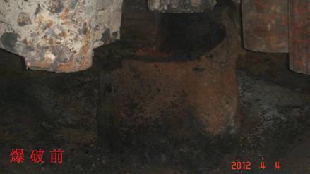 44,应云维乙炔化工有限公司(业主)要求,我项目部对其厂区1#电石炉内石墨电极成功实施分解爆破。