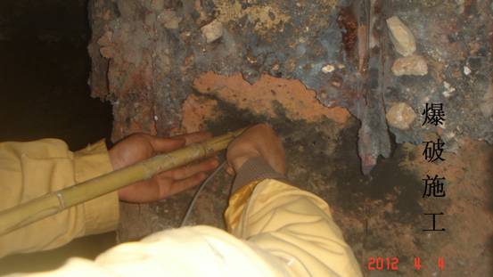 44,应云维乙炔化工有限公司(业主)要求,我项目部对其厂区1#电石炉内石墨电极成功实施分解爆破。