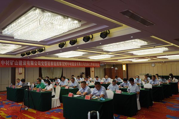 2021 年9月 23日中材矿山党委巡察组巡察兖州中材党委工作动员大会在济南召开,中材矿山党委巡察领导小组副组长邢士军、中材矿山党委巡察组组长董焕民、中材矿山党委巡察组副组长邬云齐齐格等一行8位同志莅临大会。公司党委委员、其他领导班子成员、近3年内退出(休)的领导班子成员、机关党支部书记、各部门负责人、职工代表,党群、人力资源、纪检监察部门工作人员等38人参加现场会议,各分公司(项目)支部书记、项目经理44人以视频形式参加会议。会议由公司党委副书记何芳训主持。