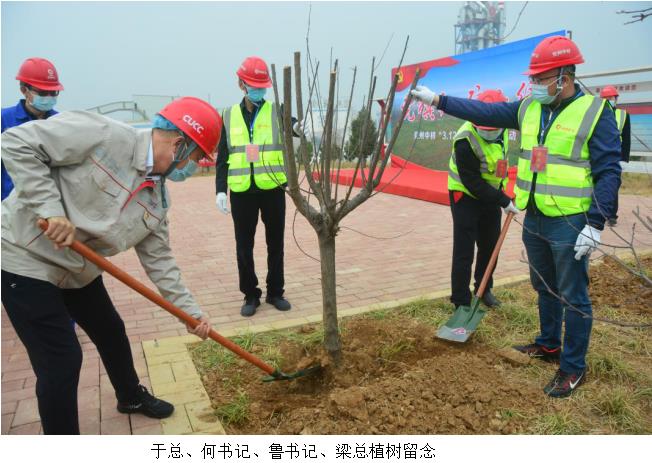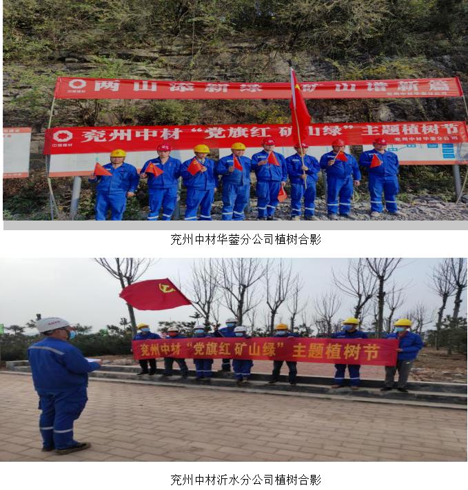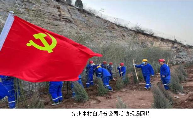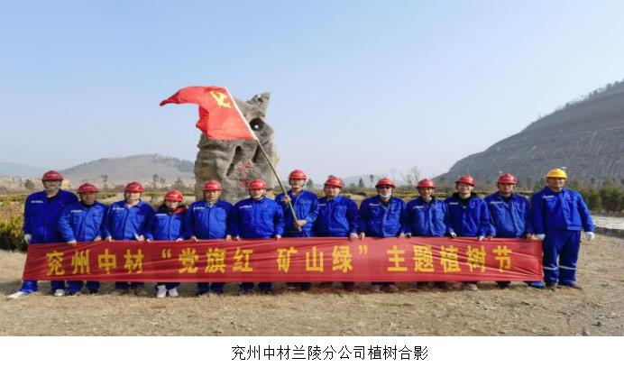 中材矿山总会计师于剑平、兖州中材党委副书记何芳训、纪委书记鲁臣参加了泰安分公司落虎山水泥用灰岩矿开展“党旗红矿山绿”主题植树节活动。