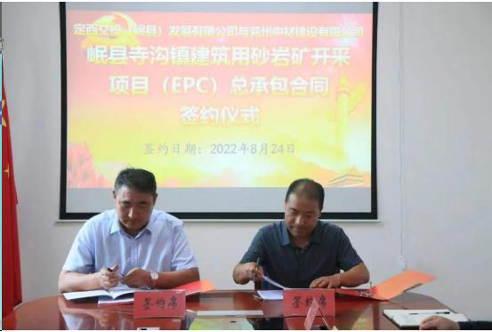 8月24日上午,定西交投(岷县)发展有限公司与兖州中材建设有限公司签署岷县寺沟镇建筑用砂岩矿开采项目(EPC)总承包合作协议,在岷县投资建设绿色、环保矿石开采加工生产线。