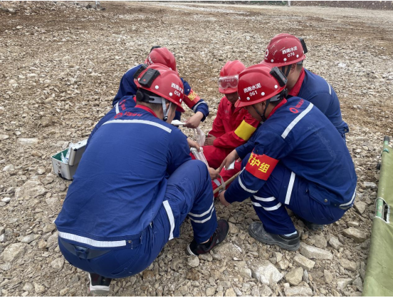 受伤人员救出后,医疗救护组进入现场,通过伤情检查,发现伤员腿部受伤,立即对伤员进行救治