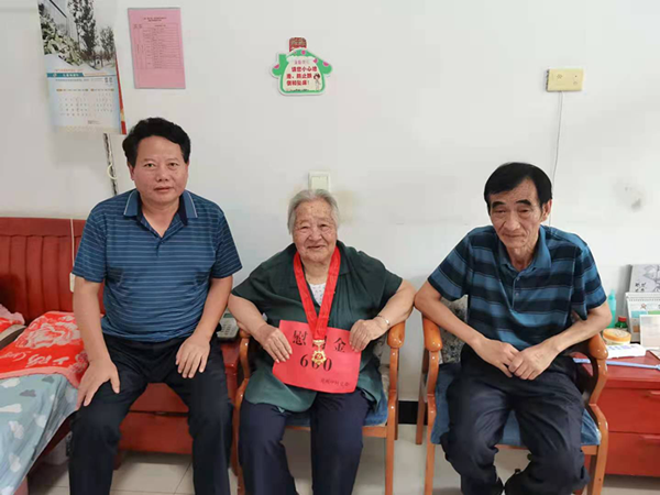 颁发纪念章,致敬老党员