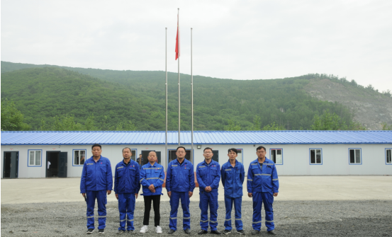 2022年7月1日, 兖州中材和龙分公司在Ⅳ号矿组办公生活区举行“升国旗、唱国歌”仪式,风展红旗如画,砥砺初心如磐。