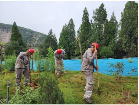 青年突击队积极参加兖州中材河南片区党支部“党旗红,矿山绿”活动,为赶上降雨在烈日之下前后共种植各种树木千余颗,提升了大家保护生态环境的意识,增强了绿化、美化矿区的责任感,充分展现了新时代青年的奉献精神和央企员工爱岗敬业的风采,以实际行动践行了“绿水青山就是金山银山”发展理念,为推动绿矿山色发展作出了贡献。