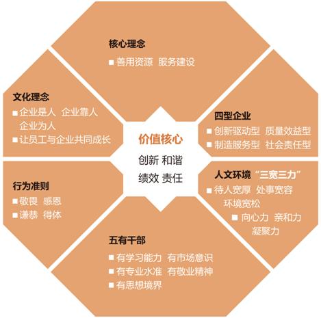 中国建材集团认真履行作为中央企业应担负的政治责任、社会责任和经济责任,崇尚“创新、绩效、和谐、责任”的核心价值观,倡导“敬畏、感恩、谦恭、得体”的行为准则,本着“企业是人、企业靠人、企业为人”的原则,积极营造待人宽厚、处事宽容、环境宽松和向心力、亲和力、凝聚力“三宽三力”的人文环境,把实现人的幸福、人的价值作为企业发展的重要目标和根本追求,努力追求“让员工与企业共同成长”。